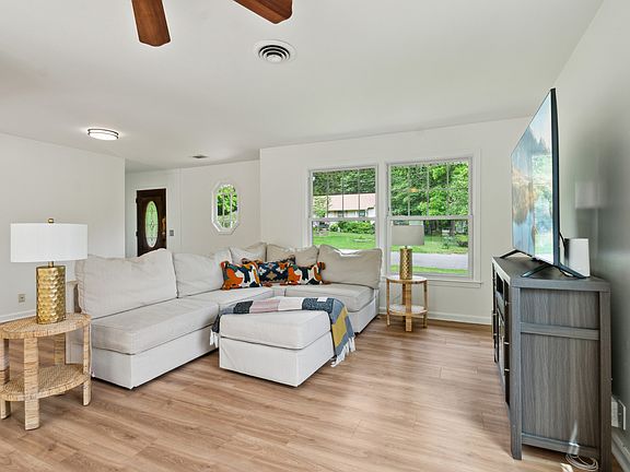 Discover this gem located in the heart of Hendersonville! One of the largest homes in the neighborhood and offered at an incredible value! With charming arched entryways and modern updates, there's a lot to be adorned at 154 Timberlake Dr. The owners have added a new roof (2023), new 2-car garage doors (2024), luxury hard plank flooring (2024), new carpet (2024), a new deck (2023), fresh paint throughout (2024), and new windows. A laundry chute on the main level drops into the wash room, where a new washer and dryer set (2024) await. Step outside to discover a beautifully maintained and shaded lawn, complimented by a quaint bridge that allows for continued enjoyment of the grounds. NO HOA! Conveniently located near commuter highways, restaurants, and grocery stores, this home offers convenience along with plenty of room to customize and make it your own! -P