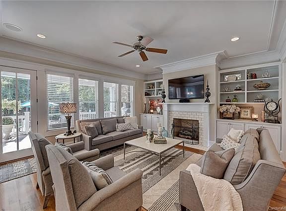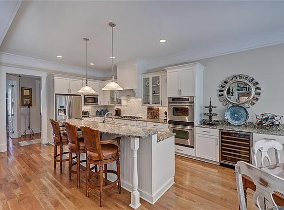 Welcome to this charming & bright Charleston style home! Enjoy the open floor plan that allows for easy lake living & entertaining space. The spacious kitchen has white cabinets, luxurious appliances, ample storage & opens to the light-filled great room. Cozy up in the cheery great room by the gas fireplace overlooking covered back patio. The upper level allows for great living space with large master suite, secondary bedrooms and bonus room for movie or game nights. Enjoy the NC seasons from the double veranda, covered porch or paved patio with firepit. Make the most of Lake Norman with the deeded boat slip. Large, flat yard allows for room for a pool!