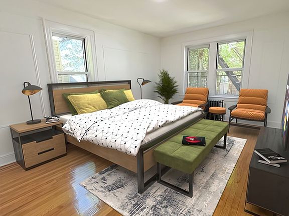 The newly renovated apartment is in a truly gorgeous & historic building with a number of amenities, including a large laundry room, Amazon Hub locker, outdoor area, and an elevator. Street parking is available. Common area hallways and exterior landscaping around the property are in the process of being updated and modernized.