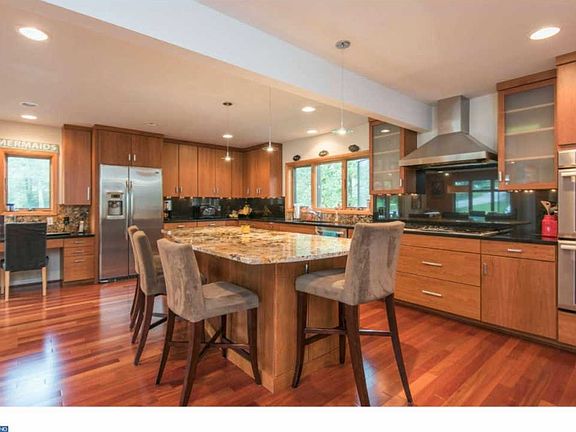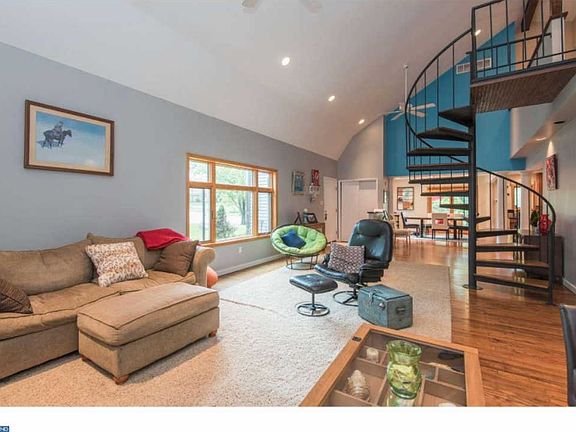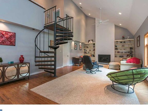 Welcome to 154 Vassar Circle, a unique four bedroom, two full & two half bath home located on a quiet corner lot in Radnor Township of Villanova. Enter this home through the bright vestibule which opens up into the main living space with hardwood floors throughout. A coat closet is conveniently located to the left of the entryway that continues into the spacious, open floor plan of the main level with two story vaulted living room ceilings. Two beautiful custom built-in book cases surround the sophisticated gas fireplace in the sun-filled living room. The large, open modernly updated and professionally designed kitchen features a granite island with seating for five, granite counter-tops, stainless steel appliances including a double convection oven and a gas stove. A built in desk is adjacent to the kitchen cabinetry, for a convenient first level work-space. The open dining room is spacious with plenty of room for a large dining room table. Natural light fills the level through the numerous windows and sliding doors that leads to a bi-level deck off of the dining room,perfect for entertaining. An upgraded powder room and pocket door enclosed laundry room completes the first level. Just off of the living room is the desirable main-floor master suite that features a completely upgraded, en-suite bathroom. The focal point of the house, the beautiful cast-iron and wood spiral staircase leads to the second level. A spacious, open loft greets you at the top of the stairs.. The second level is home to three bedrooms, another den/reading room and a full dual-entry bathroom and an additional half bathroom. The generously proportioned bedrooms are spacious, with plenty of closet space. The lower level is completely finished with multiple closets for storage, a utility room with a basin sink and an additional recreational room, perfect for a gym/home office. This property is situated on a beautiful tree lined lot and features driveway and garage parking. The neighboring mansion and barn holds historic ties to the property and neighborhood. The surrounding neighborhood is active with entertainment, clubs and holiday traditions. 154 Vassar Circle is located in the sought-after Radnor School District, and is just minutes away from the Radnor Trail and mainline amenities such as salons, spas, shopping and wide variety of dining choices. Don't miss your chance to own this truly lovely home in a wonderfully social neighborhood in Villanova.