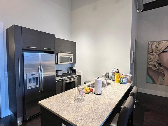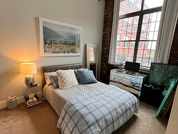 Fantastic 1 bedroom loft with SUPER high ceilings! All granite counters in the kitchen, breakfast bar, hardwood floors, central HVAC and washer/dryer in unit. Pet friendly too! Building amenities include a spacious roof deck complete with kitchen, bathroom and fantastic panoramic views. A common courtyard, bike racks, a small fitness room, and 1 indoor tandem garage parking space included (upgrades available for a single/non-tandem spot). Broadway Red Line T Station a 5 minute walk away, Foodies a 3 minute walk away, major highways and the Seaport District are seconds away by car. Available 10/15! Tenant pays gas and electric, landlord pays water and sewer