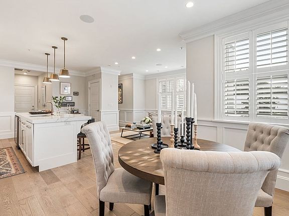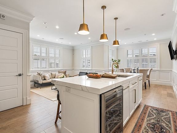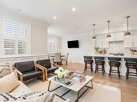Built in 2017, this corner two bedroom, two bathroom penthouse home at The Austin features beautiful craftsmanship and detail throughout. Sun filled living and dining areas surround the all white chef’s kitchen with Calacatta Quartz island, brass hardware and top-of-the-line Thermador appliances, including a gas range and a beverage refrigerator. The primary bedroom has a huge walk-in closet, wallpapered accent wall, and a stunning ensuite bath with herringbone marble floors and walk-in glass shower. The versatile second bedroom has a Murphy bed surrounded by built-in bookshelves and cabinetry. Additional features of this gorgeous home are two deeded garage spaces, central air conditioning, washer/dryer in unit, custom plantation shutters and surround sound. Professionally managed elevator building has a landscaped common courtyard with two gas grills. Convenient to South Boston’s favorite spots including Tatte Bakery, Loco, Bar Volpe, and the highly anticipated Washington Village.