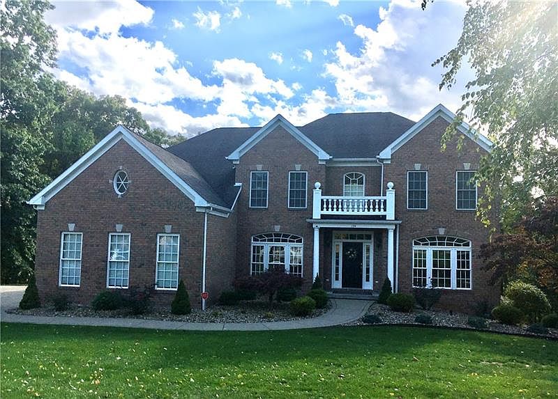 A phenomenal home in a phenomenal setting...mature trees ...3.5 acres...quiet cul-de-sac...AND three floors of excellent livability...It begins with the vaulted ceiling entry (living and dining rooms on either side) and a ship galley staircase. High end appliances, especially the gas stove...a huge pantry, a laundry room and copious cabinets enhance a kitchen overlooking a casual sunroom eating spot and a large deck with retractable awning. The family room has a vaulted ceiling and gas fireplace. The size of the dining room lends itself to family and friends gatherings. Two of the bedrooms share a jack and jill bath. The master is on the opposite side of the house and has a very pretty closet and a large master bath. The lower level is walk out to the yard and has two finished areas AND two large storage areas. There is also a water treatment system. Brady's Run Park is minutes away. Rt. 376 to Pittsburgh in one direction, minutes to Ohio the other