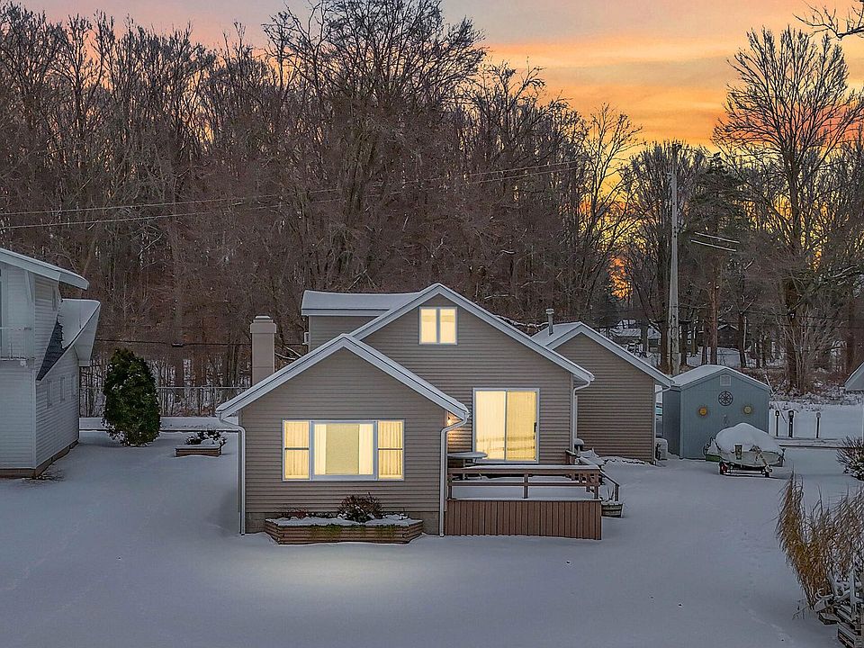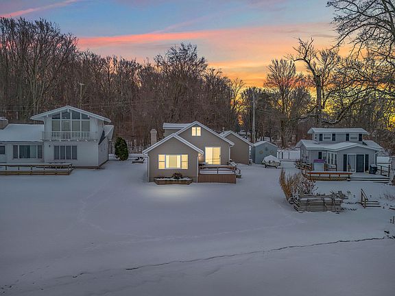 Marble Lake!! This very well kept lake front home with all the charm and character is calling your name! Eat in kitchen with lots of cabinets and storage, main floor laundry, dining room, living room, family room with fireplace overlooking the beautiful water. Enjoy waking up and having the lake right outside your window in the primary main floor bedroom. Spacious bathroom with walk in tiled shower and linen closet. Large deck and yard allows you plenty of space for barbecues and gatherings with all of your family and friends. One car garage, whole house generator, and spacious upper level room that currently has 3 beds but could easily hold even more for plenty of sleeping space. LEASED LAND. Don't miss your chance to own this beautiful and affordable home on the south chain of lakes. Call Listing Agent for more details. This company makes no warranty or representations about the contents of this data including room sizes & sq. footage. It is the responsibility of the parties looking at the property to satisfy themselves as to the accuracy of this information. Taxes were obtained from the local assessor and the taxes could change for the buyer after a closed transaction.