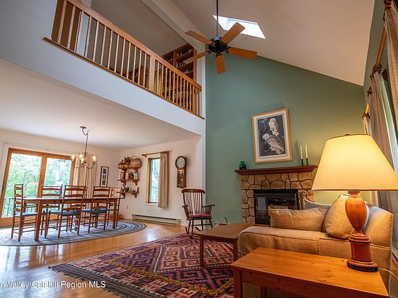Down a Scenic Country Lane, past Shetland Cattle and Beautiful Farmland, down the long driveway to your Country Contemporary Home in the woods with Seasonal Eastern Vistas of the Taconic Range and a Very Private Setting. Upon entry, the home invites you in with Open Living area, Soaring Ceilings, Beautiful Stone Fireplace, Huge Kitchen. Down the hall is a powder room and a substantial Den for office or additional sleeping. Upstairs there is a Loft Area looking down on the 1st floor with potential for a 3rd bedroom, as well as another 2 large bedrooms and an ample full bathroom. Outside there is a walking trail through the woods ending at a surprisingly unique and beautiful vista to gaze at! Low traffic road insures peace and quiet. Minutes to Pine Plains and Millerton, just down the road from Ancramdale Hamlet. This house has Tons of Potential, or Move Right in and Enjoy! Come start your next chapter in peace and tranquility!