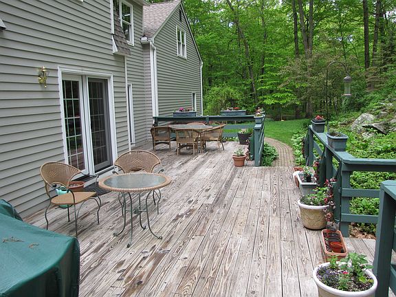 This is a home in pristine condition which includes an updated kitchen with granite counter tops, an Electrolux gas 6 burner cook top, a Decor electric oven and all stainless appliances. There are 4 bedrooms and 2-1/2 baths all recently renovated with earth-tone tile and granite vanities - the master bedroom has a giant jaccuzi tub and also a separate shower. All windows and doors have been replaced with top of the line Pella windows which are aluminum on the outside and stained wood on the inside - French doors open from the eat-in area the kitchen and one of the two family rooms to a very large deck that is shaded by giant oak trees. Floors throughout are hardwood - the outside of the house is stained cedar clapboard and the house is surrounded by beautifully landscaped gardens.A new Architectural shingle roof was installed on 2/2013. Neighborhood Description All single family housing on generous lots of 1-1/2 or larger