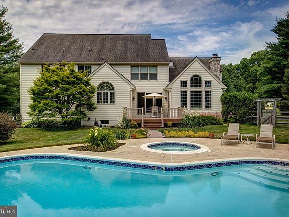 All offers in by Saturday, March 22nd at 5pm Beautiful home in the Avonlea Development built by Tom Bentley in the West Chester School District. Corner lot with private setting complete with pool, spa & patio in the back for entertaining. The house sparkles in the sun light with large windows and a 2 story entry with turned stair case. The Living Room and Study flank the main entrance. The Study has cherry wainscoting, crown molding, built ins with grass cloth wall covering. The Dining Room is off the Living Room and also flows into the Kitchen thru the Butler's Pantry. The gourmet Island Kitchen with stainless steel appliances (Wolf warming drawer, oven & cooktop, Viking refrigerator & microwave, Bosch dishwasher) has large windows looking onto the back yard, it also opens to the Breakfast Room which has a slider out to the Patio. The Family Room is off the Breakfast Room with a fireplace, built ins and a Large picture window out to the pool area. There is a Half Bath off the Main Entry Hall, a Laundry Area off of the back Hall, entry to 3 car garage and back stairs. Living Room, Study & Family Room have wall to wall carpet, tile in the Laundry and rest of 1st floor has hardwood floor. 2nd floor Primary Suite features a Sitting Room off the Hall, which connects to the Bedroom with a large window looking out to the back yard, large walk in closet, Primary Bath with jet tub, stall shower with glass surround and double vanity, off the Bath is a workout/office with a built in sauna & included treadmill. The 2nd Bedroom has a attached full bath, the 3rd & 4th Bedroom share a Hall Bath. Lower Level unfinished waiting for your imagination.... Newer Hardiplank and windows...house has been meticulously maintained by the original owners.
