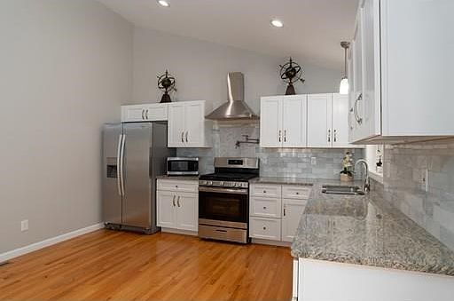 Practically new outstanding Ranch with an open floor plan dripping with natural light is what youll find here. Built in 2017 and surrounded by attractive new construction homes, this beauty has it all! Cathedral ceilings that draw the eyes up and gives off a grand feeling with recessed lighting and wood floors flowing throughout the living room, dining area, and kitchen makes this airy space so easy to entertain in. Expect to be impressed by the high-end kitchen boasting modern granite countertops, stylish tile backsplash, stainless steel appliances, and even a pot filler. The sliding glass doors off the kitchen/dining lead to the deck and spacious backyard. The master bedroom features wood flooring, a walk-in closet, and a contemporary full bath. Tall ceilings in the basement allowed an opportunity to add a bonus room with a closet! Schedule a showing and you'll discover why youd love to call this place home!