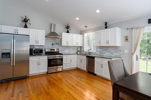 - Kit Dscrp: Window(s) - Picture, Flooring - Wood, Dining Area, Countertops - Stone/Granite/Solid, Ceiling - Cathedral, Stainless Steel Appliances, Open Floor Plan, Recessed Lighting, Slider, Pot Filler Faucet, Gas Stove, Lighting - Pendant