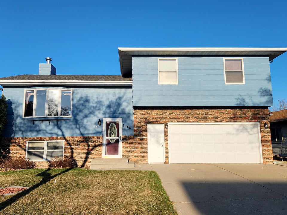 Can't miss opportunity in south Bismarck, ready for you to make your own! Great floor plan and space, with beamed vaulted ceilings, lots of kitchen storage, and access to the back deck overlooking a mature back yard with trees and a shed. Three bedrooms upstairs, including a primary suite with ¾ bath, have good closet storage and are accompanied by a hall bath with gorgeous custom tile surround. The lower level has a rec room with fireplace and the 4th bedroom, both with new carpet! The ¾ bath and laundry finish off this level which also has access to the two-stall garage.