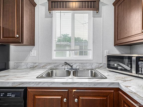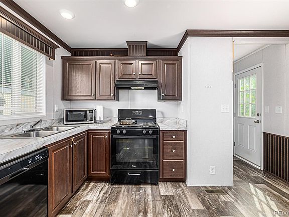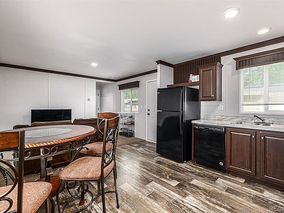 Welcome to the Community of the desirable Green Acres! Discover the charm of this 2021-built manufactured home, now available! Be greeted by an inviting living room adorned with soothing paint tones and plush carpeting. The eat-in kitchen is a homemaker's dream, complete with built-in appliances, recessed lighting, enough counter space for meal preparation, and beautiful wood cabinetry with crown molding. Additional highlights include wooden panel accents and wood-style vinyl flooring. This gem provides two perfectly sized bedrooms with soft carpeting and two full pristine bathrooms. Take advantage of the carport with a storage shed for your vehicle and essential tools! Excellent location! Centrally situated with easy access to great dining options, excellent shopping centers, and top-notch medical facilities. Plus, quick and convenient highway accessibility. What are you waiting for? Create new memories in this adorable abode!