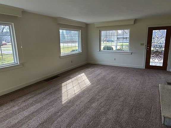 Griffith area 1 level brick ranch on a large corner lot. 4 bedrooms, 3 baths with a partial unfinished basement. Driveways off Bosley Road and Stratford Drive. 29' X 26' family room plus living room and formal dining room. 28' X 15' breezeway/patio between house and garage. Come see!