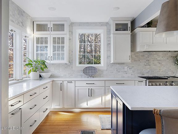 Perched majestically atop a serene hillside, this expansive home stands as a testament to luxury and charm. With a private vantage overlooking the picturesque Tyler Park, the home at 1540 Castlewood Avenue boasts an abundance of character harmoniously blended with lavish modern upgrades. Upon entering, you will instantly be drawn to the spacious and meticulously remodeled kitchen that seamlessly integrates into the dining area, featuring quartz counters, an expansive island, loads of counter space, two sinks, and two dishwashers, all enveloped within custom cabinetry offering loads of storage. Opposite the kitchen is the generous living room flooded with natural light and featuring a comforting fireplace. Just off the living room is an inviting home office space, complete with a stunning wall of windows offering views of Tyler Park and the landscape surrounding the property. Ascending to the second floor on either of the two stairwells to three bedrooms, including a resplendent primary suite exuding sophistication with its updated en-suite bathroom featuring dual vanities and opulent marble tiles. A rare gem within older Highlands homes, the custom-built walk-in closet adds a touch of exclusivity and luxury for everyday living. Two additional bedrooms share a beautifully updated hall bath. Ascending further to the third floor reveals a captivating bonus area, already encompassing a fourth bedroom and an additional full bathroom. The fully finished basement, transformed into a speak-easy-inspired entertainment haven, boasts a built-in bar with sink, wine cellar, a fifth bedroom, and a fourth full bathroom, ideal for hosting and relaxation. This meticulously maintained property spans over 5,500 square feet, offering an exquisite blend of Highlands' charm and modern opulence, setting itself apart as a truly extraordinary residence.