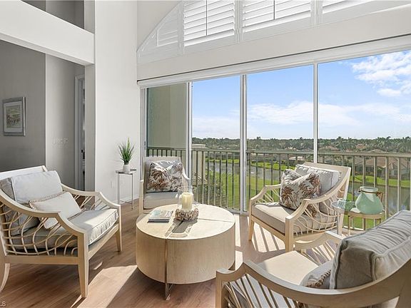 Located in the highly sought-after Pelican Marsh community, this beautifully updated penthouse offers a refined coastal feel and impressive 14-foot ceilings that create a bright, open atmosphere. The home features new flooring throughout, complemented by all-new furniture and appliances that enhance its fresh, modern appeal. Enjoy panoramic views of the Pelican Marsh golf course from the comfort of your living space, where natural light and serene greenery define the setting. The spacious primary suite includes a king-size bed and an elegant, well-appointed layout designed for comfort and relaxation. Additional conveniences include an elevator and a two-car garage, providing both ease and practicality. Residents can take advantage of the walking path leading directly to Pelican Marsh's world-class amenities, including tennis, pickleball, and bocce courts, a recently renovated fitness center, and the popular indoor-outdoor Courtside Restaurant. This property exemplifies Naples living at its finest, blending style, functionality, and an unbeatable location in one of the area's most desirable communities.