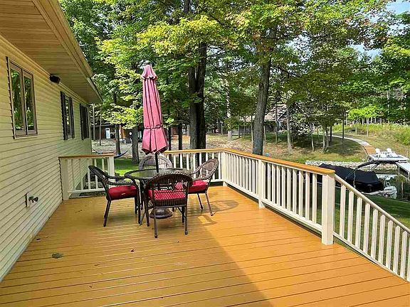 Lake Lancer Waterfront. Well maintained Bi-level with 4 bedrooms, 3 full baths, master suite, ceramic and carpet floors through out, located on quiet cut-de-sac. This home sits on 50ft of Lake Lancer shoreline with steel seawall and short distance to main water. Beautiful new deck on back, deep organized 35ft garage with circle drive and has plenty of storage and workshop space. Also includes sprinkler system and 8x12 shed, New forced air heating (2020), A/C, new washer/dryer and new hot water heater. Home perfect or 2nd home or snowbirds because of easy winterizing system seller installed and backup heat for utilities in winter. Make no mistake this can be a wonderful year-around home also and with great neighbors as well. Beautifully landscaped. Home will come mostly furnished.