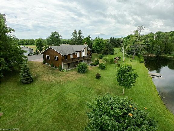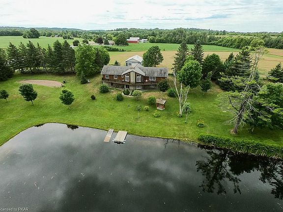 Spring has sprung and buds are starting on the trees that create the canopy as you drive up the lane on this beautiful property! In the 'new normal', this is your oasis where you have it all!! Approx 10 acres of organic type soil for your own veggie garden; detached shop/shed where you can work from home, have some free range chickens with super fresh eggs, one stable area for a horse!! Home is totally suitable for multi-generational living; beautiful spring fed pond for summer swimming or winter skating. In the trees are trails to the log cabin ideal for the kids or overnight guests who want to get back to nature! Screened in large gazebo next to the firepit/bbq great for family gatherings and the ability to socially distance. FUTURE POTENTIAL for a couple of lots fronting on Old Shelter Valley Rd. Home boasts soring cedar cathedral ceiling with stone fireplace (gas insert); gleeming hardwood floors combined with the farm eat-in kitchen. Ideal entry to mud room/laundry/2 pc directly from the garage; garden doors to huge deck overlooking manicured grounds and the pond. Your stay-cation only 5 min north of Colborne/BigApple/401 on county road 25.