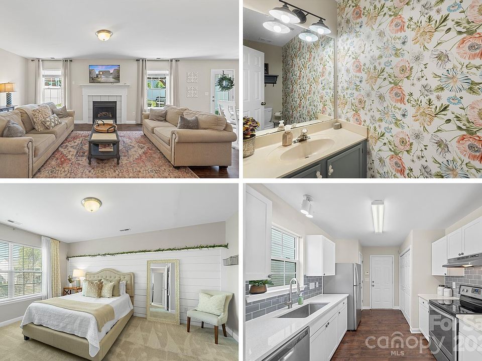 This beautifully updated 2-level contemporary home offers 3 bedrooms and 2.5 bathrooms and NO HOA! Freshly painted with popcorn ceiling scraped and removed, the home features durable laminate wood flooring in the main living areas, large windows for natural light, and a cozy gas fireplace. The updated and modern kitchen boasts white-finished cabinets, custom tile backsplash, ample counter space, Stainless steel appliances and a dedicated pantry. The primary suite includes a custom-designed accent wall, neutral carpet, walk in closet, and an ensuite bath with a sleek shower. The secondary bedrooms are generously sized and provide great flex spaces if needed. Exiting to the back yard you will love the private, flat and fenced backyard featuring a patio and pergola—perfect for entertaining or relaxing. Great location with easy access to I77 and just minutes from both downtown Rock Hill and Fort Mill. Don’t miss this move-in-ready home!