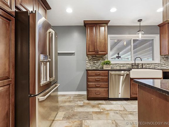 This gem has updates galore, and is nestled just minutes from the park and Brookside. Completely remodeled kitchen with granite countertops, walnut cabinets, GE Cafe appliances, double ovens, brand new carpet throughout, remodeled full and half bath, "Family Safe" storm shelter, new gutters, full brick, storage shed, large covered patio, and more! This is a must see and will not last long!