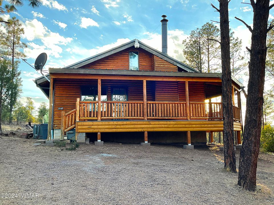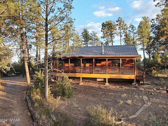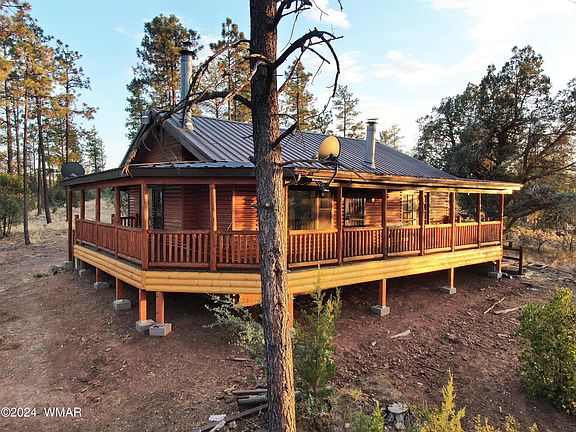 This cozy cabin faces an unobstructed view of National Forest. Situated in the tall pines, this cute two bedroom is sure to charm you with beautiful wood accents, a jetted tub, two wood stoves, an outside ramada, all this on over an acre and a quarter of forest.