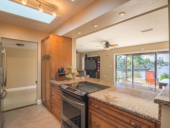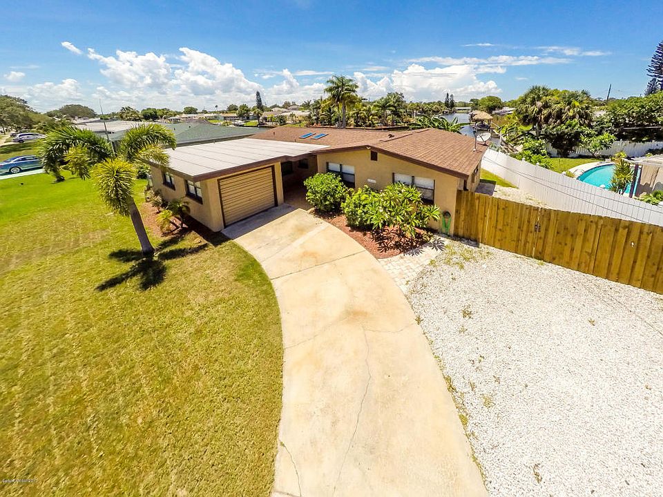BEAUTIFUL DEEP-WATER WATERFRONT HOME COMPLETED REMODELED. Features include: 4/2 split plan with garage, laundry room and dock, located on a canal leading to Sykes Creek and Intercostal Waterway. Updated kitchen features quartz counter-tops, stove has warming oven and minute boil burner, solid wood cabinets with soft close drawers & pull out pantry shelves, 2 skylights, breakfast bar, stainless steel appliances. Newer roof & kitchen sky lights (2015), package 3.5 ton A/C replaced (2013). Remodeled guest bathroom has seamless glass, rain shower, jetted Jacuzzi tub and modern vanity. Neutral interior paint colors and tiled floors throughout.Sit under the covered patio and relax to the water views, watch manatees, and dolphins or take the boat for a ride. A+ schools, must see!