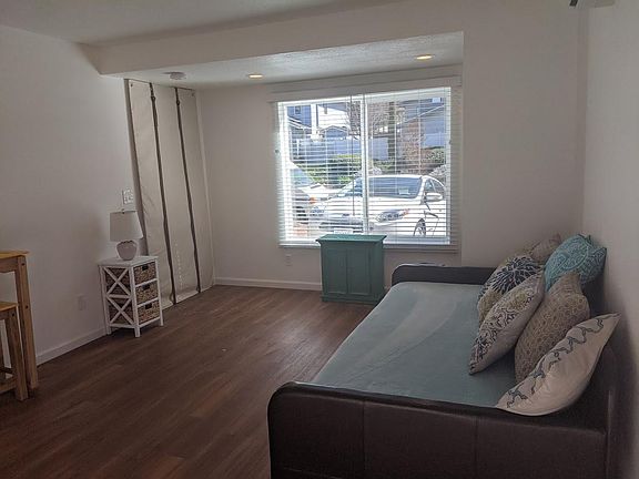 Ready to move in...just bring your clothes. Masks must be worn when viewing. Internet, water, trash, and all utilities included. Light filled, furnished studio in quiet cul de sac 1.5 miles from downtown San Luis Obispo. 277 square feet. One person only. Own entrance at side of house. The unit is attached to the main house and shares two walls so quiet, respectful individual essential. New kitchenette with shaker style cabinets, 2 burner ceramic hob, small refrigerator, microwave, countertop toaster oven, toaster plus cooking and tableware. There is a daybed (which doubles as a couch) and includes a wheel out trundle. Wood laminate flooring. One bathroom with shower. 46" smart TV. Street parking. No smoking or vaping. No pets. Month to month rental. Credit and background check required. We have wonderful, respectful neighbors and want to find an equally wonderful and respectful tenant. My family and I live in the main house. $1500 per month. First month upfront and $2000 deposit. Interested? Please send an email telling us something about yourself/selves, your employment/income, and rental history. Please include an email address and phone number. Owner pays for all utilities, trash, sewer, internet.