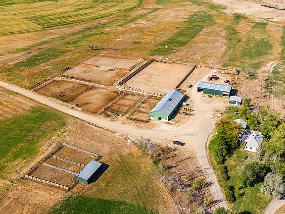 754 +- acres with 680+-irrigated acres, 3 full circle pivots, a moveable K-Line irrigation for 200 acres. Go from your land to the BLM grazing permit without trucking that allows 116 animal units for 6 months. 38 x 80 machine shop with an apartment, carpenter shop, main barn with 7 stalls & tack room, Racetrack Barn with 3 turnouts, 100' x 215' roping/riding arena, sorting pens, feed lot pens.
