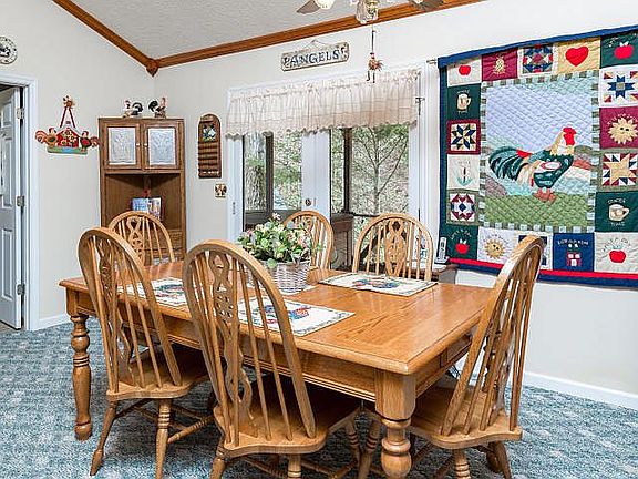 Awesome three bedroom three bath home in Licklog Hollow. This is three lots totaling over 8 acres with around 2000 feet of meandering stream running through it in a beautiful, park-like setting. Over three miles of hiking trails and several springs on property. Home features master suite on main along with second bedroom and an office. Open concept kitchen living room . Downstairs is partially finished with 512 sf and being used as 3rd bedroom and 3rd bath. Two story out building with electric situated over stream set up with screened porch, living area down and a bed in loft . Nice & quiet neighborhood beautiful setting, no HOA fees and low county taxes. All appliances including washer & dryer, most furniture, tools & riding mower convey with home. Drone pics do not indicate view