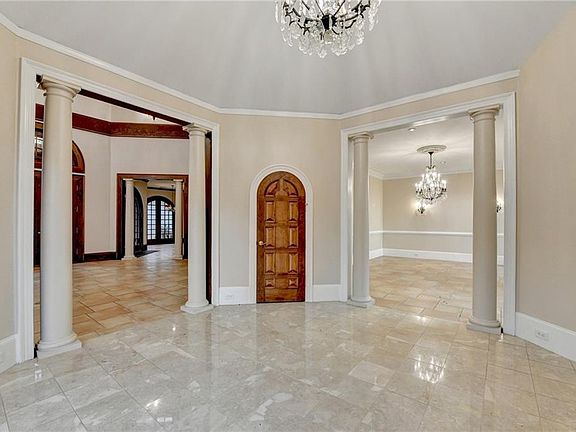 Grand fireplacePrivate lakeRemote-controlled chandelierTwo custom closetsSecond dishwasherWet barFormal solarium-style foyer