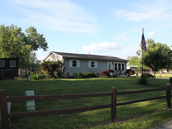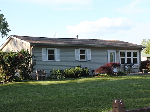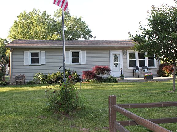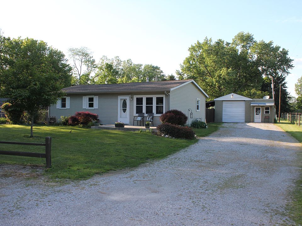 Distinctive one-level living can be found in this 1,180 SF, 3 bed ranch home that offers functionality indoors and tons of creative fun outside. Upon entering, you are welcomed into a spacious living room with a vaulted ceiling and electric fireplace which adds such luxury. The completely updated kitchen boasts new modern countertops, stainless appliances, cabinet doors & hardware, vinyl plank flooring and lighting. An updated bath with all new fixtures sits down a hall along with the family bedrooms and a large primary with the same vaulted ceiling. A separate laundry room off the kitchen is convenient to the enormous fully fenced back yard with built-in seating deck, set apart garden area, chicken coop/dog kennel, huge covered patio with patio lighting, ceiling fan, outdoor kitchen with sink and fridge, clean 18' swimming pool with deck, private firepit area with built-in swing and so, so much more. The detached heated/cooled oversized one-car garage has a 10 ft high door and is large enough for multiple projects at one time. BUT WAIT...You will also find a separate finished area currently being used as a beauty shop but can be used as another business...maybe a dog grooming or personal training or ??? This space also has room to expand. The location can't be beat with views overlooking horses in a pasture to minutes from SR 67 or I-69.