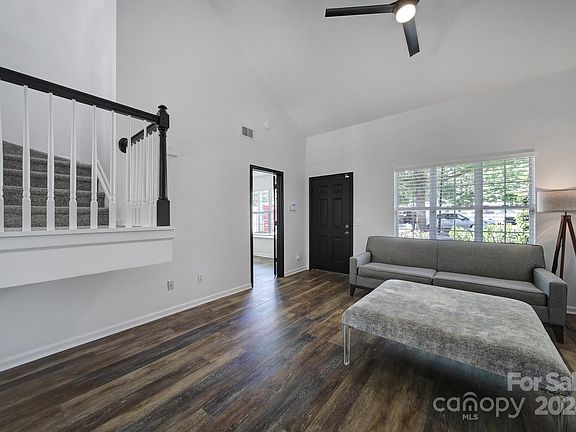 This well taken care of & updated end unit townhome is ready for its new owner. Recently updated with new paint, new carpet, new hardware, & new light fixtures throughout. Step in & experience the modern aesthetic with fresh, clean, newly painted white walls & bold, black trim & doors. Notice the new matte black door hardware on all interior doors & a brand new black ceiling fan in the vaulted living room. Head into the primary on the main level & into its ensuite to find an updated bathroom with new light fixtures & vanity mirrors. Head upstairs to find fresh new carpet all of the way up & in both bedrooms, one of which is an open loft with a closet & has the potential to be walled in for complete privacy. Step out the back door from the kitchen onto the large deck & notice the beautiful green yard, trees, & handy storage closet surrounding you creating a private & peaceful place to relax. Close to retail & restaurants & just off of the exit for quick access to I-77.