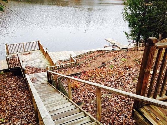 Updated Smallwood Lake WF cottage; 2-3 bedrooms, 1 full bath. Great views and frontage accented with wood boardwalk, deck and steps to cottage level. Many updates inc most windows,hot water tank, furnace & interior decor as well as the steps, decking and permanent docking at water's edge. Steel seawall. 16x24 patio outside WO lower level. Wooded setting on scenic turn of the river/lake. Perfect for nature lovers, all sport yet quiet enough for canoe or kayak. "Toy Port" (for pontoon or jet skis) and additional shed complete this vacation package.