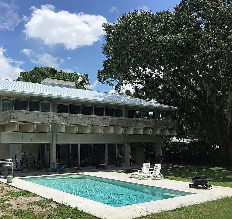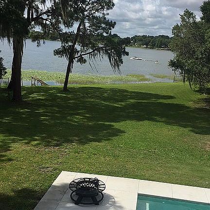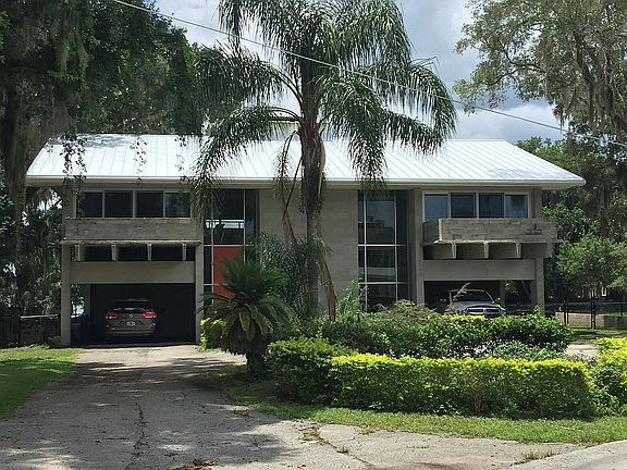 This pool, lakefront home in the chain of lakes is a one of a kind, mid-century modern gem. Built by Gene Leedy and recently renovated with 3,885 square feet of living space. Features a large office and recreational room. Contemporary design with glass across the back of the home to bring the lakefront inside. Gorgeous, spacious kitchen with stainless steel appliances, lots of cabinets and granite counter-tops. Balconies connected to each bedroom and the living room for access to the outdoors from the second floor. Very large rooms. This home comes equipped with an elevator, and tons of storage.