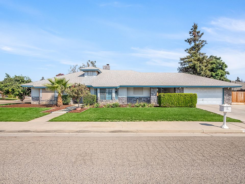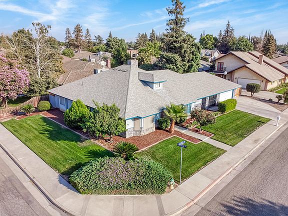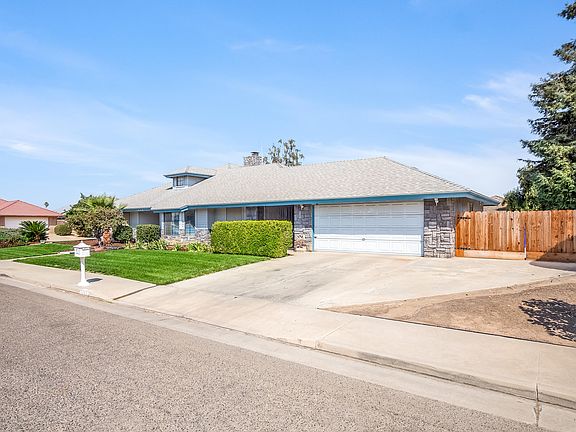 As you enter this Porterville home you are greeted with coffered ceilings. To your right, the grand family room is adorned with wooden beams and a cozy fireplace. The kitchen and dining room are just off the living room making it a perfect space for entertaining. The kitchen has built-in cabinets, dishwasher, and stove, along with a center island providing extra counter space. There are doorways that lead from the family room and kitchen to the covered patio and breezeway extending your entertaining space for outdoor gatherings. In the front of the home you will find a bedroom with double doors that could be used as an office or large playroom. Down the hall, two more spacious bedrooms with built-in cabinets share a dual sink bathroom. The oversized master is equipped with it's own personal brick fireplace, larger master bathroom, walk-in closet, and private door leading to the backyard. The backyard is an oasis for entertainment as the newly updated pool and in ground spa