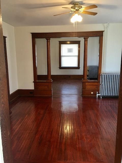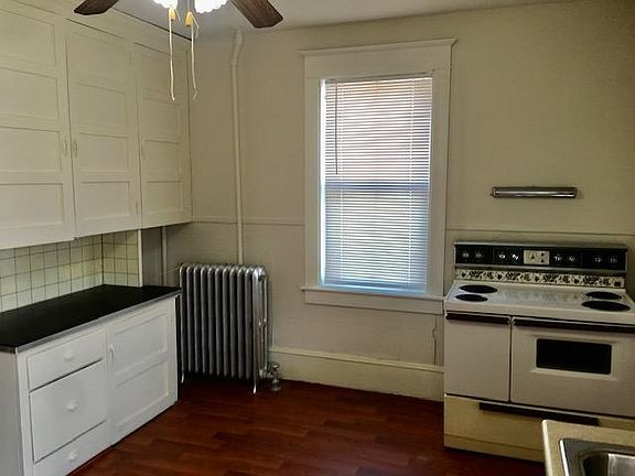 This large 4 room apartment is on the 1st floor. its spacious and private with shared back yard and storage space in the basement. This apartment has 1 bedroom with closet a dining room and an eat in spacious kitchen and a living room. Apartment will be freshly painted and floors will be redone. washer dryer available for use as well walking distance to shops. All utilities are paid by tenant. electric heat water and sewer. TENANT RESPONSIBLE FOR GAS AND ELECTRIC AND WATER
