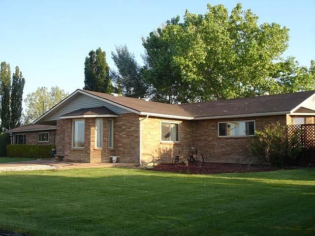 Large brick rancher with new windows, facia & soffit. Detached 3 car garage, lots of established trees. Spectacular views and privacy. 12x24 finished shop (insulated & wired). 16x12 covered screened patio. 4.2 shares of class 1 water and 7.8 shared of class 6.