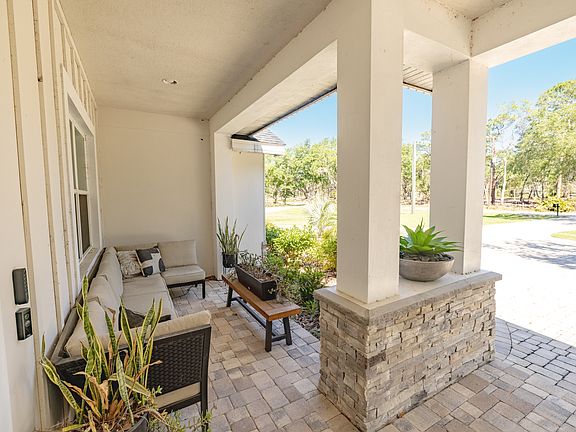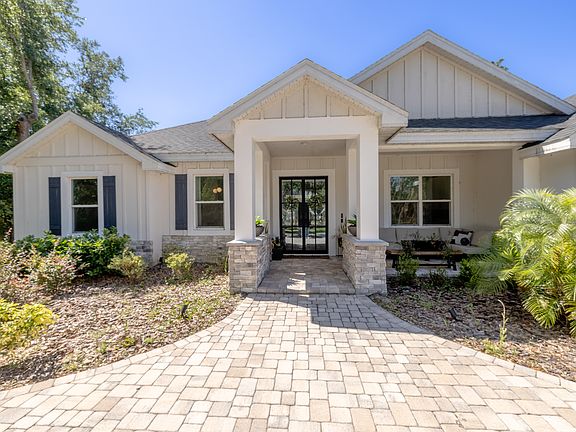 Welcome to your modern 2022 single-family home situated on an almost 33,000 sq ft lot (.75-acre)! Offering 2,251 square feet of beautifully designed living space, this residence combines the convenience of newer construction with almost $200,000 in carefully selected upgrades, creating a one-of-a-kind property that feels like a private resort. From the moment you arrive, you'll notice thoughtful details inside and out. Step into the backyard oasis where a resort-style custom pool is surrounded by lush professional landscaping and a full privacy fence, setting the stage for endless relaxation. The covered lanai extends into an impressive outdoor living space featuring a built-in grill station complete with custom tile and shelving, designed for cookouts and gatherings of any size. With no community restrictions, you'll enjoy the freedom to truly make this property your own while still enjoying the feel of a resort lifestyle. Inside, the heart of the home is the gourmet kitchen, upgraded with a designer island, custom pull-out drawers, and a walk-in pantry enhanced with stylish tile accents. The open-concept living area flows seamlessly, highlighted by a custom fireplace and integrated surround sound that make both everyday living and entertaining effortless. A designer California Closets bar with quartz countertops, dedicated electrical, and a built-in beverage fridge serves as a striking showpiece, elevating your home entertaining to new heights. The primary suite is a luxurious retreat with a custom-designed walk-in closet and spa-inspired bathroom accented by elegant wallpaper. Guest spaces have been equally considered, with grasscloth wallpaper in the guest bath, upgraded finishes in the secondary bedrooms, and even a flexible piano room offering endless possibilities. An office complete with custom cabinetry makes working from home both functional and stylish. Additional enhancements include a striking upgraded front door, a trimlight system for year-round ambiance, a 240V EV charger for convenient home charging, and smart garage organization systems with overhead storage. The laundry room has also been finished with upgrades that make everyday tasks both practical and polished. Blending modern construction, luxury upgrades, and unmatched flexibility, this home offers something truly rare in today's market: the privacy of a large lot, the freedom of no HOA or CDD, and the comfort of a property that has been elevated far beyond builder-grade finishes. Every detail has been carefully designed so you can move in and immediately enjoy the lifestyle you've been waiting for.