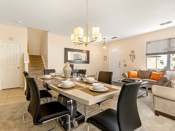 This property is a corporate rental. Please note that the monthly rental price for this property is dynamic and subject to seasonal adjustments. For an accurate quote, provide us with your intended move-in and move-out dates. Property Overview 5BR, 4B, Sleeps 10 Private Screened Pool & Spa Game room Outdoor Dining & Lounge Area Updated Interior FREE WiFi Fully Equipped Kitchen Towels & Linens Provided Accommodation Kitchen: Open to the main living area with bar seating for 4 Living Area 1: Open to kitchen with comfortable seating Living Area 2: Small living room attached to 2nd dining area Dining Area 1: Directly off of kitchen with seating for 8 Dining Area 2: Separated from the kitchen, attached to the small living area, seating for 8 Games Room: Fun-filled games room including air hockey and foosball as well as a pool table in the upstairs landing area Upper Level Bedroom 1: King-size bed, ceiling fan, TV. En-suite bathroom with walk-in closet, shower cubicle, double sink unit, WC Bedroom 2: King-size bed, ceiling fan, TV, walk-in closet. En-suite bathroom with shower cubicle, sink, WC Bedroom 4: Queen-size bed, ceiling fan, TV, walk-in closet Bedroom 5: Twin beds, ceiling fan, TV, walk-in closet Family Bathroom: contains shower over bath, 2 Single sinks, WC Main Level Bedroom 3: Queen-size bed, ceiling fan, TV, slide closet. En-suite bathroom with shower cubicle, sink, WC, door to pool deck Additional Bathroom: cloakroom next to the lounge and Bedroom 3 has a sink and WC Pool Area Relaxing pool and spa area with plenty of seating for all Fully screened with a privacy fence around the yard Covered table & chairs for outdoor dining Pool Door Alarms for Safety Pool size: Length:25ft, Width:13ft, Depth:3ft-5ft Windwood Bay/Local Area Windwood Bay is an established Davenport community tucked away along the Ronald Reagan Parkway (County Road 54) away from all the hustle and bustle. The homes were completed in 2006 on large lots, and many of the 220 privately owned rental villas have views across conservation areas. Disney theme parks are 15 minutes drive away and other Orlando attractions are no more than 30 minutes away. Shops, restaurants, and golf can all be found less than 5 minutes from this community. Nearby Attractions Airport (Orlando International) - 30 - 35 Minutes Airport (Sanford) - 55 - 60 Minutes Busch Gardens - 60 - 65 Minutes Disney\'s Animal Kingdom - 15 - 20 Minutes Disney\'s Epcot - 15 - 20 Minutes Disney\'s Hollywood Studios - 15 - 20 Minutes Disney\'s Magic Kingdom - 15 - 20 Minutes Islands of Adventure - 25 - 30 Minutes SeaWorld - 20 - 25 Minutes Universal Studios - 25 - 30 Minutes Ideal Location Situated conveniently near Disney and Universal Studios, our home is surrounded by popular restaurants. The self-check-in process ensures a seamless start to your getaway. Family-Friendly Amenities: Traveling with little ones? Enjoy complimentary use of baby and toddler items, including highchairs and travel cots. Worry-Free Stay: Rest easy knowing our home and pool are professionally managed and maintained, ensuring a worry-free and delightful stay. Immerse yourself in the perfect blend of comfort, entertainment, and convenience at our enchanting vacation home. Book now for an unforgettable escape! Ellis Exclusive Villas We are offering a wide selection of family-friendly vacation homes in Orlando. We have vacation rentals of all types, from 3 to 10-bedroom homes with private pools. Dedicated to creating the perfect vacation. Our local team is on hand to respond to your needs 7 days a week. Book your perfect Florida family vacation getaway today. We look forward to welcoming you! OTHER THINGS TO NOTE POOL HEATING: This is recommended from October through April to enhance the enjoyment of your pool time. This home has a new electric pool heater and requires a 3-day minimum for the service to be activated. The cost is $35 per day and is best added prior to arrival so the pool is warm when you arrive. SPA: If you would like the spillover spa to be heated you will need to add pool heat to your reservation LAST MINUTE BOOKINGS: Bookings made within 14 days of the arrival date must check in during office hours before the access information is released. The credit/debit card used for payment must be shown along with a valid driving license or passport in the same name as the card. As well as a utility bill with the same address as the card billing address. Pre-paid cards are not accepted. **Guests will be required to sign a Rental Agreement and provide a copy of their ID. Contact us to schedule a showing.