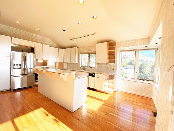 Incredible location and views! Large kitchen with island, side-by-side fridge, oven, range and dishwasher. Open floor plan with dining room and living space. Two spacious master suites. Large family room with walk out patio. Three large decks with amazing views of the Salt Lake Valley, three-car garage, many extras. Central A/C. New carpet being installed throughout!
