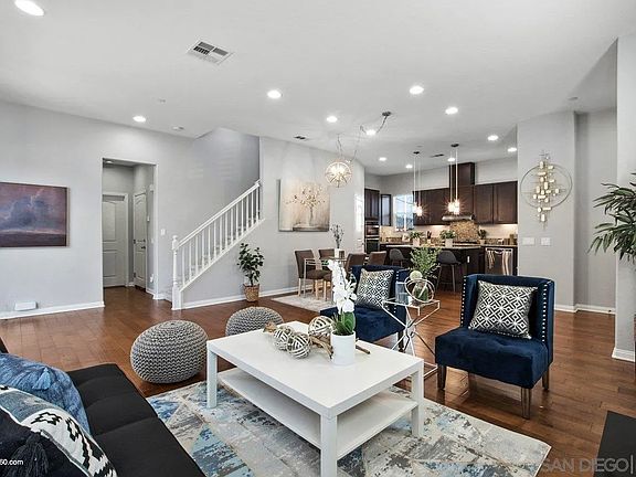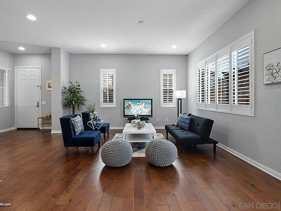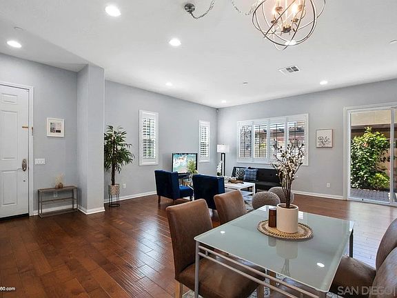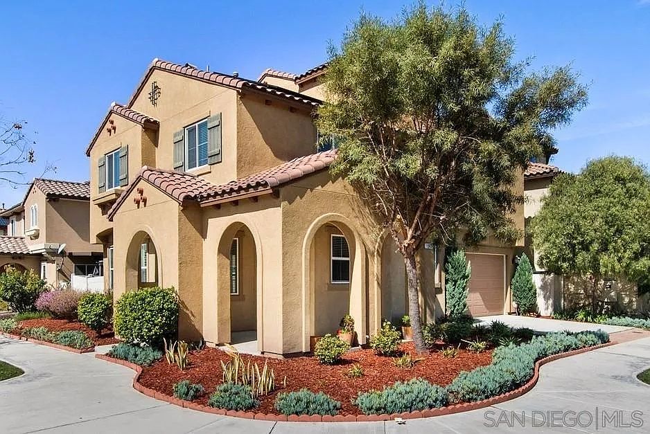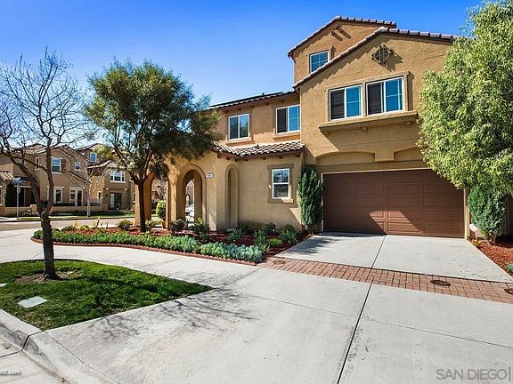 Back on the market due to no fualt of the home. This move-in ready, corner lot, Corta Bella model with private driveway features an inviting open-concept family room-dining room combo that's paired with an entertainer's kitchen that includes an oversized island, granite counters, stainless steel appliances and plantation shutters. The first-floor guest bedroom and full bath are perfect for guests, in-laws or for a home office. The large second-floor primary bedroom with attached bonus room is perfectly suited for a nursery or sitting room. Second-floor laundry is ideally placed next the primary and two secondary bedrooms on this floor. Third-floor private suite includes a generously sized bedroom, full bathroom, and separate multi-purpose living area and is perfect for a theater room, gaming room or second family room. The back yard is highlighted with artificial turf, brick pavers, and a pergola, all outlined by mature plants around the perimeter. This home is one of the most sought after lots in the Village of Montecito community. Being only one block from the Saburo Muraoka Elementary School, you can literally watch your child walk to school from your over-sized covered front porch. Looking for sunshine and ocean breezes, you have them both with this home. Perfectly situated for morning sun on your front porch and afternoon sun in the back yard, you love going from the hot San Diego sun to the cool shade and ocean breezes this home offers. Sellers are relocating to start a new business and have priced this home fairly for a quick sale. Ask for the walk-thru video