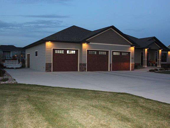 Custom ranch home built in 2014 located in Sunrise Trails, established yard, landscaping & trees, sprinkler system and .77 acres of property. 1708 square feet, open floor plan, 4 bedrooms, 3 baths total. Classy designer finishes to the many custom features that make this the home of your dreams! Granite countertops with birch cabinets in the kitchen, stainless appliances are included, under cabinet lighting, large island with seating for 4, walk-in pantry, the works! Main floor has 2 bedrooms, 2 baths, great room with gas fireplace, built in shelving, large laundry room with custom designed lockers and ample storage! Master suite is an oasis to relax and enjoy the soaker tub as well as a tiled walk-in shower. Whole house audio speakers and controls, inside and outside. Basement is set up perfect for the kids and friends...2 bedrooms, 1 bath, large family/game room and kitchenette for snacks! The garage will blow you away...1300+ square feet of insulated, heated, finished space,