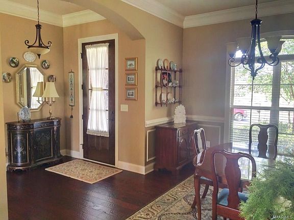 This stunning home shows like new! Well maintained and move in ready! Located in Prattvile, near interstate access, shopping and dining, this home offers everything one would expect. There are 4 bedrooms, 3 baths, and 2-car garage. Some of its many outstanding features include beautiful attention to detail with wainscoting in the formal dining room, crown molding and lovely hardwood flooring. There is a corner fireplace, gas logs and open and spacious family room to the kitchen and dining areas making it great for entertaining. The kitchen is absolutely beautiful with granite countertops, beautiful custom cabinetry and the oven can function as electric or gas! There are also two hot water heaters. The master bedroom suite offers great size, space and luxury with a jetted tub and separate shower, as well as double vanities. Lighting fixtures were upgraded at the time of construction, and energy savers included, i.e., low E windows, R-15 insulation in the walls (including garage), R-38 in the attic, power roof vents and ceiling fans. The back yard has awesome landscaping and terracing which make it a lovely garden area to entertain and relax. There is a sprinkler system, and lush and lovely landscaping in the entire lawn area.