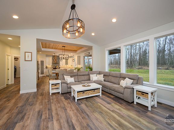 This gorgeous ranch style home is absolutely stunning with the perfect balance of farmhouse style meets modern touch. Open concept layout w/ vaulted & wood step up ceilings. Kitchen includes quarts countertops, butcher block island, farm sink & walk-in-pantry. Custom stoned fireplace, floating hand-built shelves, landscaped yard, trailer and RV pad. Southern exposure for back yard entertaining.