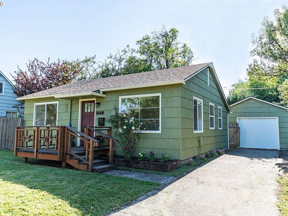 Correctly remodeled to enhance the character and charm of this original 1952 bungalow home in a wonderful, quiet neighborhood. Separate, detached 220 sq ft vaulted studio room not included in posted square footage. New roof, exterior and interior paint. Beautifully refinished hardwood floors.New kitchen floor, counters and stove. Large deck surrounded by large, fenced landscape with garden space.Same family ownership for over 40 yrs.