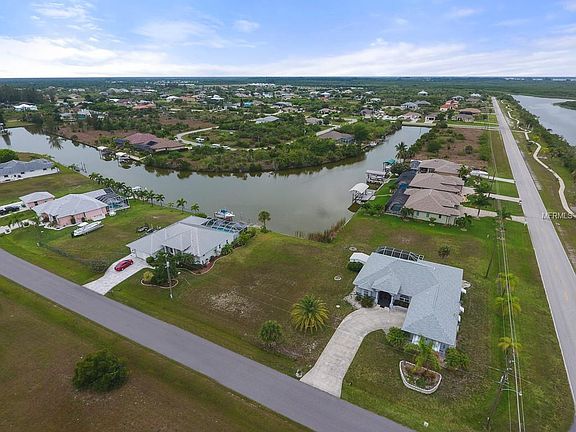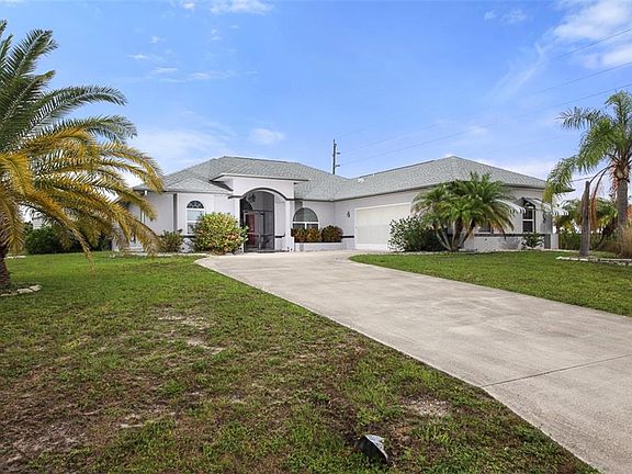Water Views from almost every room. This home is located in the fast growing community of South Gulf Cove and in one of the most Desirable areas. Big Corner Canal Views from the Lanai and Views of the Lagoon from both Bedrooms. If you like to get out and enjoy Nature there are Great Walking & Biking paths along the Linear Park that connect to Sidewalks on Calumet the Areas to Explore and Possibilities are Endless. This home was custom built by owner. The Large side load 2 Car Garage has additional Enclosed Space equal to a Single car garage for workshop etc. As you enter the home you will notice Large rooms with High Ceilings and Sliders to take advantage of the Views. If you like to Cook this Lovely Light & Bright Kitchen has plenty of Counter & Storage Space to host a party, the Dinette and counter area is where you can enjoy morning coffee, a quick lunch or snack. The Formal Dining & Living rooms Showcase the Home and are great Entertaining Spots. Everyday Living can be enjoyed in the Large Family Room with space for those Young & Young at Heart. Both the 2nd & 3rd Bedrooms have walk in closets. This home has plenty of storage throughout and shows very well. The Master Bedroom & Bath are on the Opposite Side of the home for Privacy and have Sliders to the Covered Lanai. The Extended Screened Lanai gives you plenty of room to View Sunrises & Sunsets. There are numerous possibilities for this home, Come see how you can make it your Piece of Paradise. New Roof in 2018.