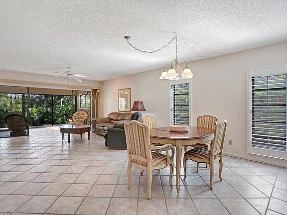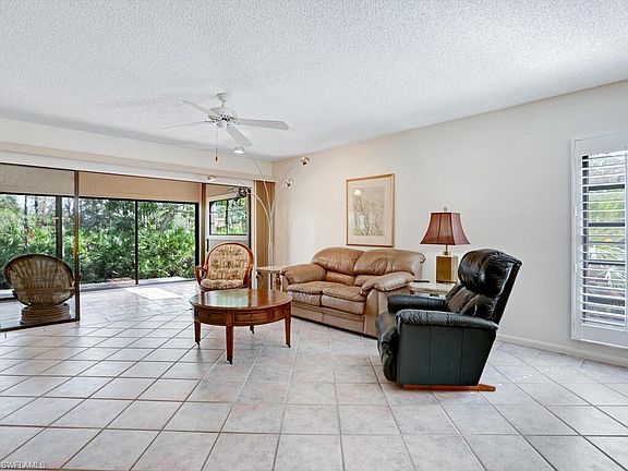 Say "Aaahh!" This 2BR/2BA end unit is a private oasis in the heart of Bay Forest. The glassed-in lanai offers extra living space, no matter the weather, and the spacious walled terrace in front can be garden, lounge, or outdoor eating area--or all three! A patio behind the unit is sheltered by lush landscaping, giving you privacy while enjoying a yard-like feel you don't get with most condos. So much room and you're still outside! Inside, the spacious living area and generous bedrooms make this unit feel larger than it is. Bonus: the Seller converted the interior storage room to an office, effectively making this a 2+Den. The unit also features an eat-in kitchen with granite countertops, custom walk-in closet, tile and vinyl floors, in-unit laundry, outdoor storage, and one-car garage with oversized attic. Sandy Pines is nestled along a lake, where wildlife play and a fountain provides calming sounds and stunning sunset images. Bay Forest's beautiful grounds include 2+ miles of paved trails, a fitness center, and enviable pickleball, tennis, and bocce courts. This friendly community is convenient to North Naples and Bonita Springs--a secluded spot in the middle of it all!