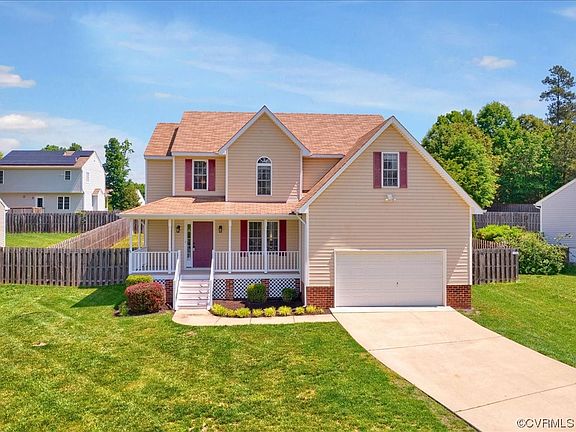 You're going to LOVE this 4 bed, 2.5 bath, 2 car garage home in the sought after Ashbrook neighborhood of Chesterfield County- Cosby High School! As you walk through the front covered porch and enter through the home you are greeted with a 2 story foyer with hardwood flooring throughout. To the right is the formal dining room that features chair rail and crown moulding and is connected to the kitchen. In the kitchen you will find recessed lighting, subway tile backsplash, stainless steel appliances, an island, eat-in area, pantry, crown moulding, and access to the spacious fully privacy fenced-in back yard. The kitchen is open to the living room that features a gas log fireplace with mantle, crown moulding, and tons of natural light. Adjacent to the kitchen is the dedicated laundry room & half bath. Upstairs there are 4 bedrooms and two full bathrooms. All have carpet and ample closet space. The primary room bath boasts salted ceilings, a walk-in closet and en-suite bath with jetted tub & dual vanities. The additional 2nd floor full bath has dual vanities as well. Outside offers a deck, swing set/playground & tons of space for entertaining. BRAND NEW DUAL ZONE HVAC SYSTEMS - 2023.