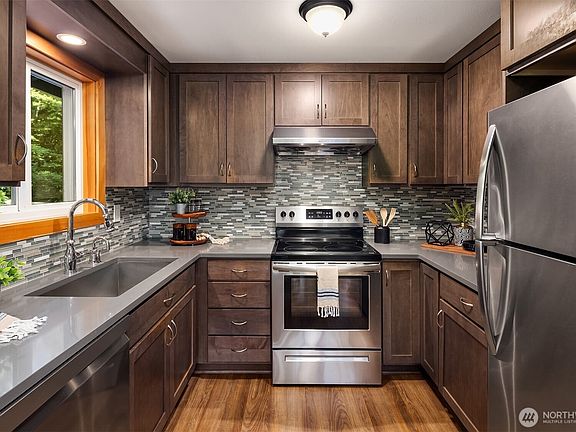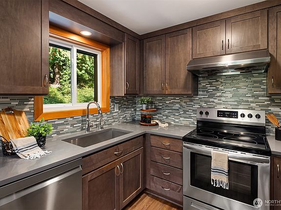 Oh the possibilities! Nestled privately among neighborhood multi-million dollar homes, a rare opportunity to own a multi-faceted Hollywood Hill home beautifully sited upon 1.08 acres, featuring 2 separate tax parcels. Enjoy an inviting updated 3 bed, 2-bath home hosting 2 full kitchens perfect for extended living and/or separate upper & lower rental income possibility. The house portrays itself as cozy/cottage but the layout is spacious and makes for easy living and entertaining with large living/dining, 2 fireplaces and sizable deck and patio. Lovely upgrades include kitchen, baths, lighting and trim. Oversize garage w/ladder storage. Build your dream home on the lovely .86 separate lot. Sought after Northshore schools. Location, location!