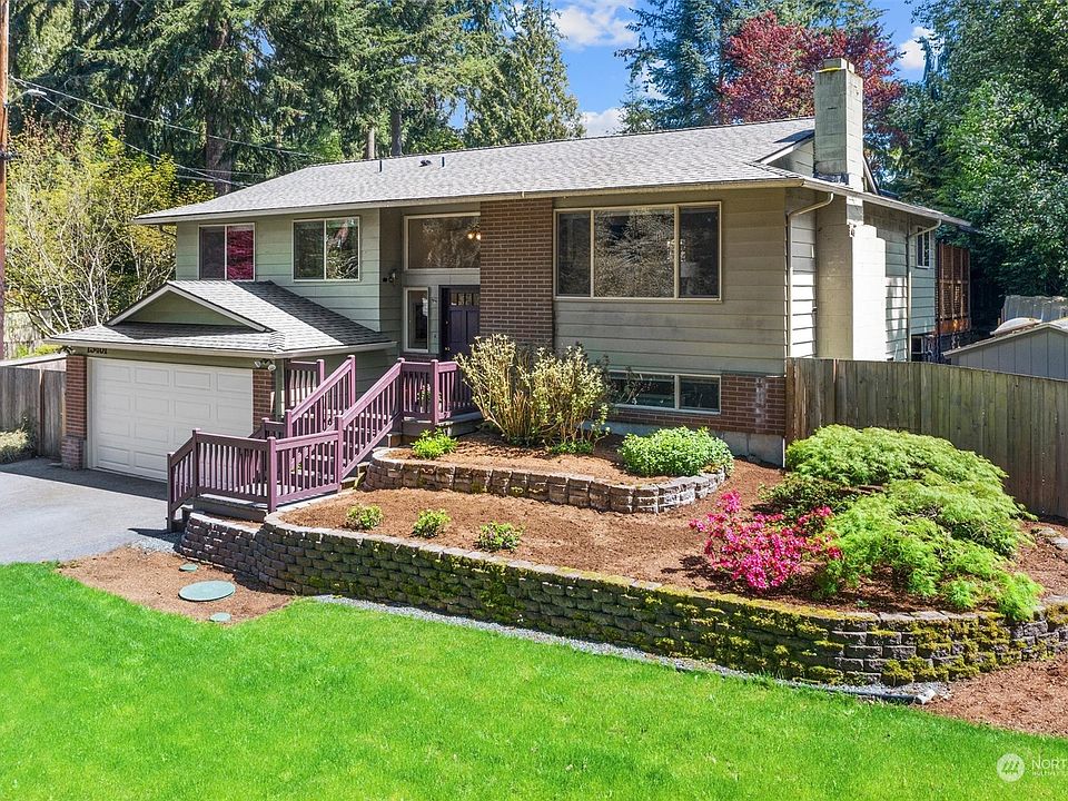 Indulge in the tranquility of this unique property! Nestled back from the street this private home features 2,093 sqft with 4 bedrooms and 2.25 bathrooms, nestled on a sprawling 13,000 sqft lot that is every garden enthusiast's dream.The interior has new carpet, fresh paint throughout & newer appliances. Bask in the natural light pouring into the sunroom adjacent to the kitchen, complete with doors opening to the huge covered deck.The lower level presents a rec room & a 4th bedroom, complemented by a 1/2 bath. The backyard boasts raised garden beds, primed and ready for spring planting! Situated just a few minutes away from Ash Way park & ride, MCTC, shopping, & dining, this home is perfect for anyone seeking convenience & privacy.
