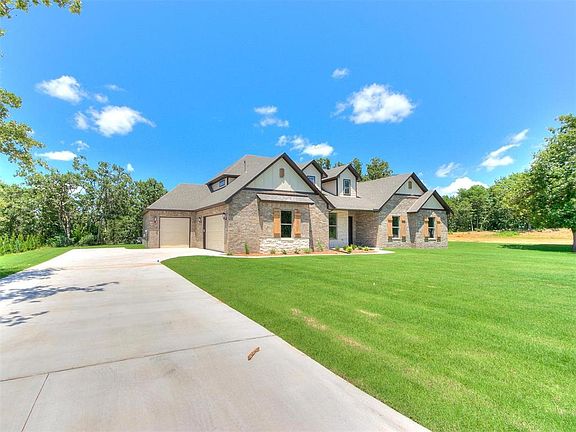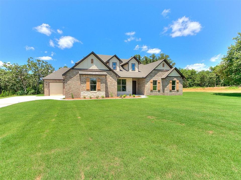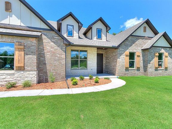 10k in closing costs incentive! The Glenbrook floor plan offers a stunning and elegant design, starting with an inviting covered porch that provides a perfect space for relaxation and enjoying the surroundings. As you enter, you'll be greeted by a grand entry space that opens up to a formal dining area and an open concept living room. The living room features a fireplace and expansive windows that fill the space with natural light. Overlooking the living room is a beautiful breakfast area and kitchen, complete with a kitchen island, granite countertops, built-in appliances, a spacious pantry, and ample cabinetry. On the opposite side of the living room, a hallway leads to the private primary bedroom. This primary suite boasts high ceilings and a luxurious bath, featuring double vanities with granite countertops, a soaker tub, a stunning shower, private toilet, and an impressive closet. The second level offers a fourth secondary bedroom and a full bath, perfect for guests. Additionally, the second floor includes an impressive bonus room that can be utilized as a game room, theatre room, or additional living space. This home also features a mud room with easy access to a spacious two-car garage, as well as a laundry area with access to an additional garage space, both conveniently located off the kitchen. A cozy patio space is also included, easily accessible from the living room Beat heat at the splash pad and swimming pool, where you can cool down and have a splashing good time. The sports court/playground are perfect for a day filled with play. Take stroll along the nature trails and soak in the views, or let your furry friend have a blast at the community dog park. And let's not forget about the location! Asheville is conveniently situated near Boeing/Tinker AFB, making commuting a breeze. Easy access to I-40.