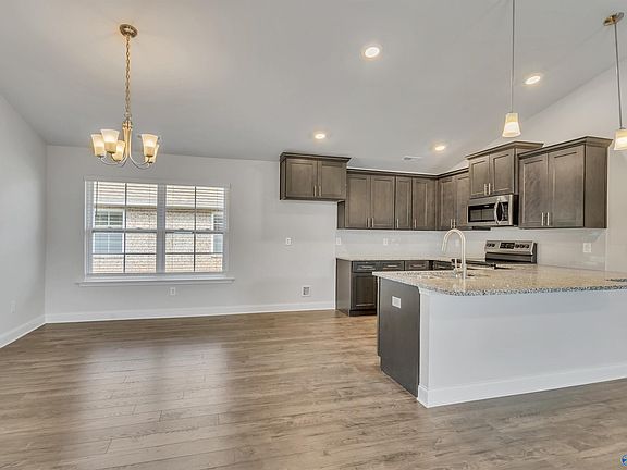 Stunning full brick home boast an inviting open floor plan with 10' sloped ceiling and sleek laminate flooring throughout the common areas. The kitchen is a chef's delight with an abundance of counter space, granite countertops, ss appliances, and custom soft close cabinets. Enter the isolated owners retreat with a 9' trey ceiling. The owners bathroom supports a deep garden tub, separate shower, double sinks, and lg walk-in closet. Whether you are entertaining guests or enjoying a quite evening at home, this meticulously crafted property offer the perfect blend of comfort and timeless appeal. Find comfort enjoying your back yard under your covered back porch. Similar Photo